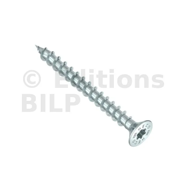 HECO-TOPIX-plus, vis de pose, tête fraisée à poches de fraisage, HECO-Drive, filet total variable, zingué blanc, A3K - Réf. 60781
