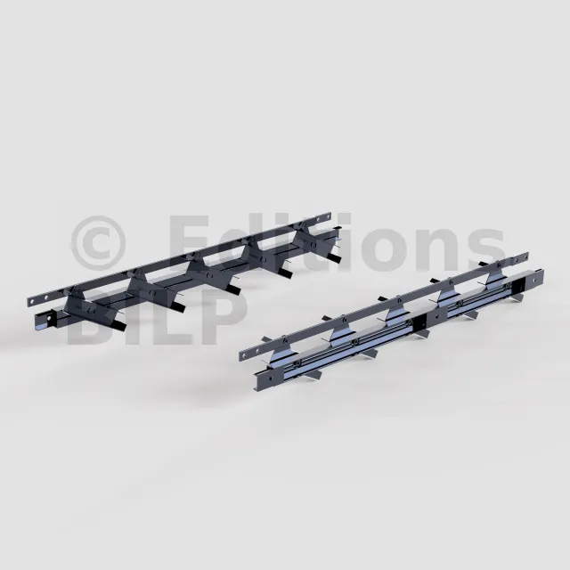 Distance entre les supports : À supposer que le mécanisme est fixé entre deux poutres, la distance entre ces deux poutres doit être égale à la longueur des lames + 35mm : 2 X 15mm (largeur du corps de mécanisme) + 5mm de jeu.