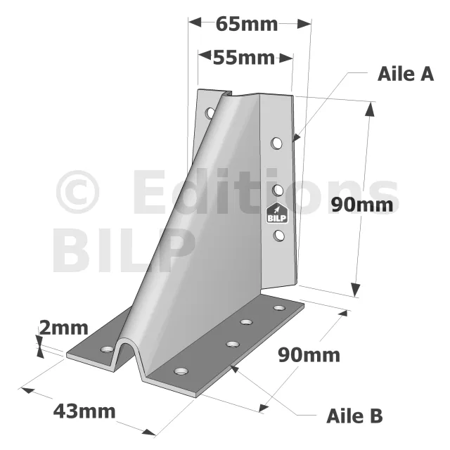 | Références | Dimensions [mm] | Perçages Aile A | Perçages Aile B | |||||