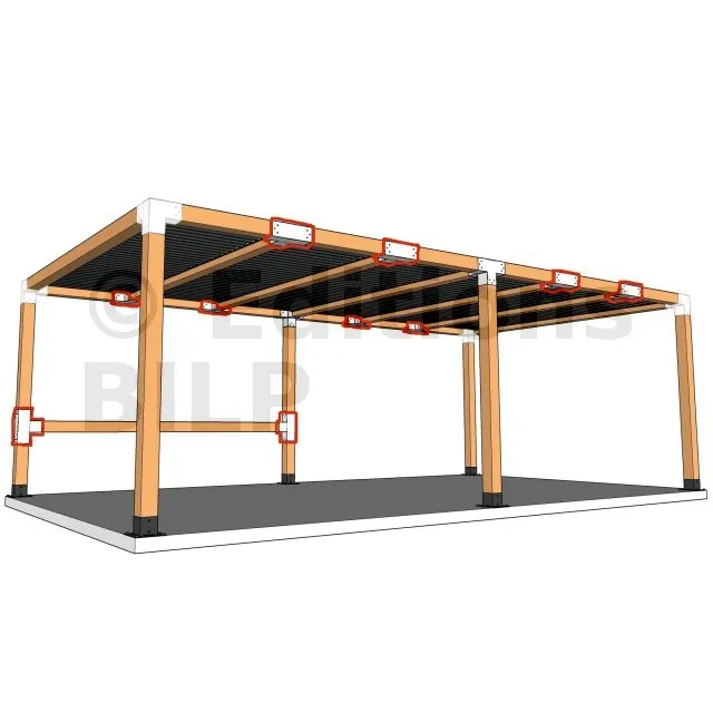 Il permet également la connexion d’une longue poutre de 120x120mm à un poteau intermédiaire de 120x120mm.
