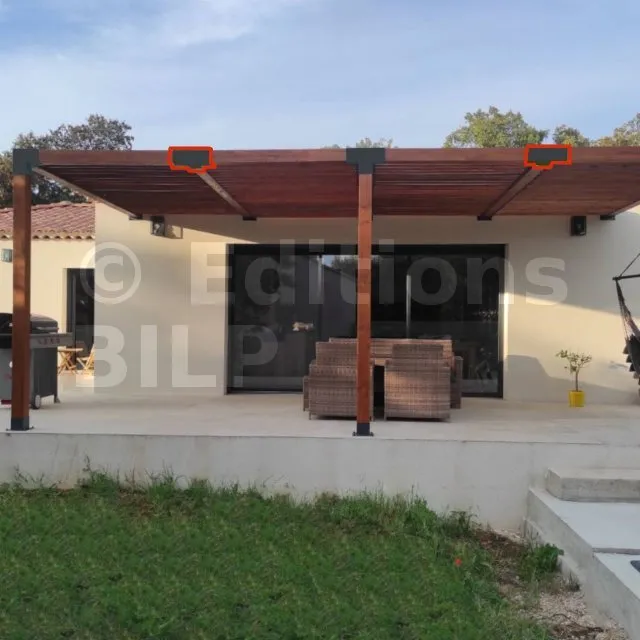 Il permet également la connexion d’une longue poutre de 120x120mm à un poteau intermédiaire de 120x120mm.