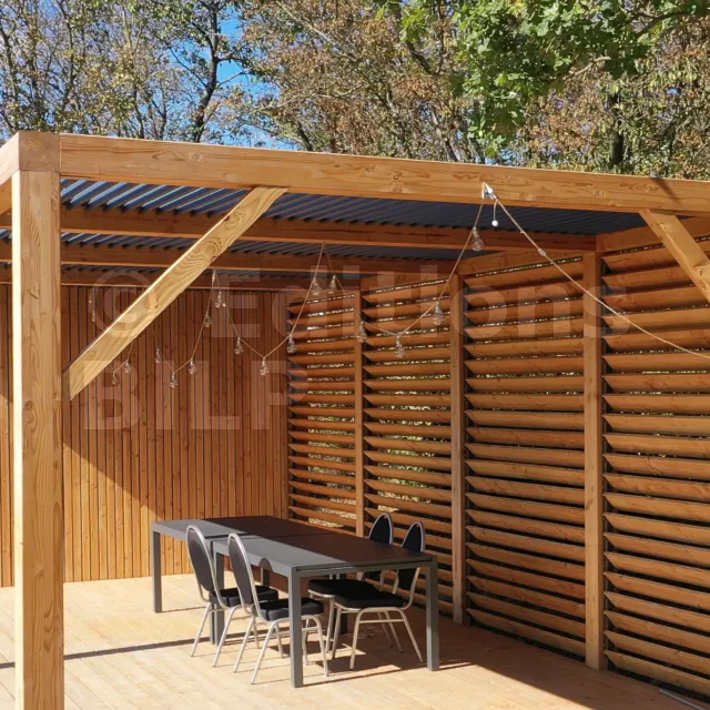 Quel plaisir de voir notre chalet mis en valeur et tellement plus fonctionnel avec une pergola bioclimatique. Nous allons enfin pouvoir profiter de notre terrasse tout l'été sans nous soucier sur soleil.