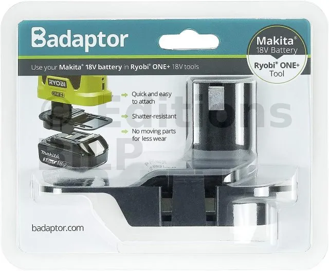 Les adaptateurs de batterie Badaptor se fixent rapidement et facilement, et vous permettent d’utiliser d’autres marques de batteries avec le pistolet B-tec 808, notamment DeWalt® 18-20V, Makita®, Milwaukee®, Ridgid®, AEG® et Bosch® Professional 18V.