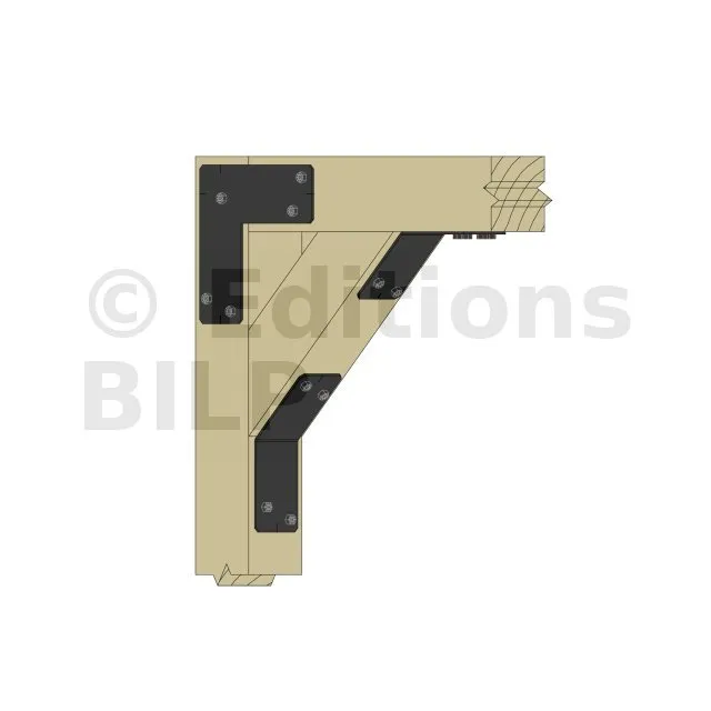 Équerre pour les assemblages de contreventements ou autres connexions à 135° présents dans les constructions légères de jardin telles que les pergolas.