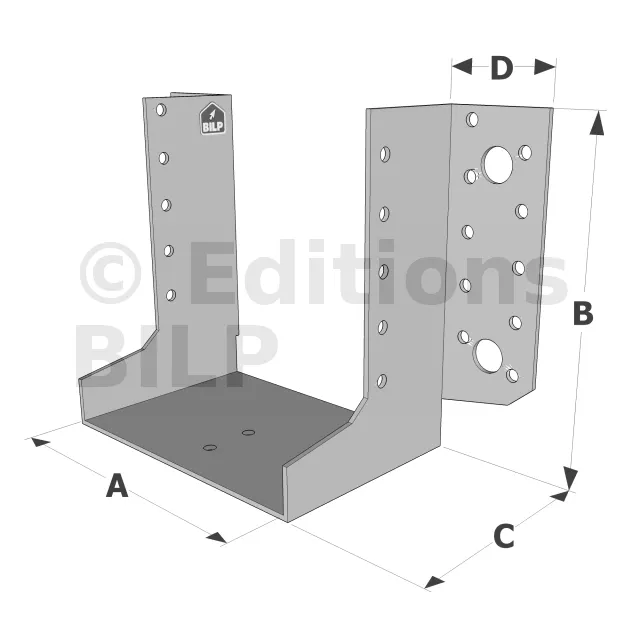 - Polyvalence : Disponibles en différentes tailles et profondeurs, les sabots SAE s’adaptent à une variété d’applications, des charpentes aux poteaux, en passant par les angles et les fermettes.