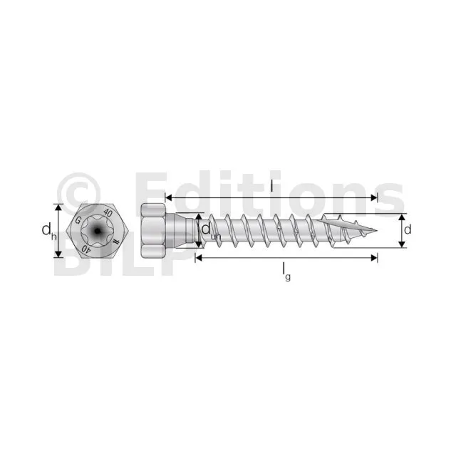 - Tête hexagonale : parfait maintien de la plaque acier sur bois grâce à sa tête large