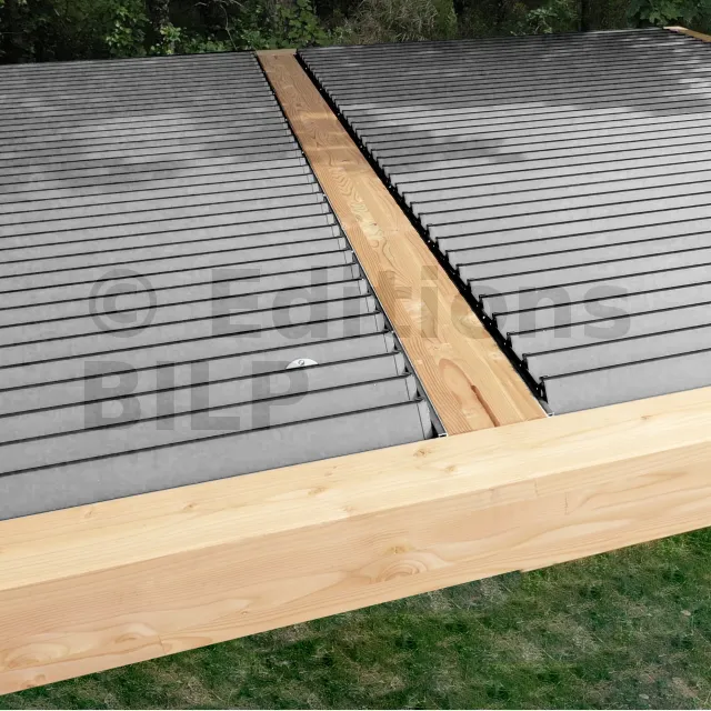 L’eau est collectée dans la rigole intégrée à la lame. Sous l’effet de la gravité, elle s’écoule ensuite de part et d’autre à chaque extrémité de la lame. Si vous recherchez une étanchéité totale, nous vous conseillons d’ajouter des chenaux qui viendront récupérer l’eau à chaque extrémité et la rediriger vers l’extérieur.