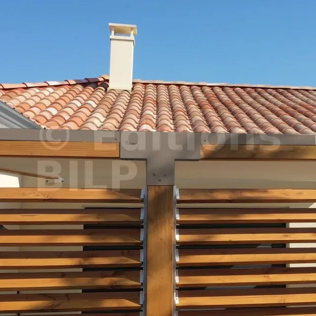 Il permet également la connexion d’une longue poutre de 90x90mm à un poteau intermédiaire de 90x90mm.