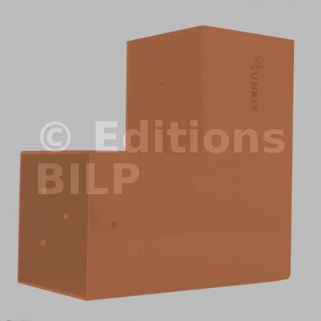Il est utilisé dans un angle extérieur. Ce connecteur va permettre de raccorder une grosse poutre 120x120mm perpendiculairement à une autre poutre ou à un poteau vertical 120x120mm.