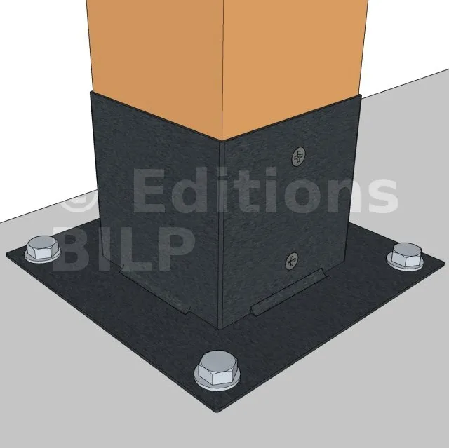 Il permet la fixation des poteaux sur une dalle ou un plot en béton.
