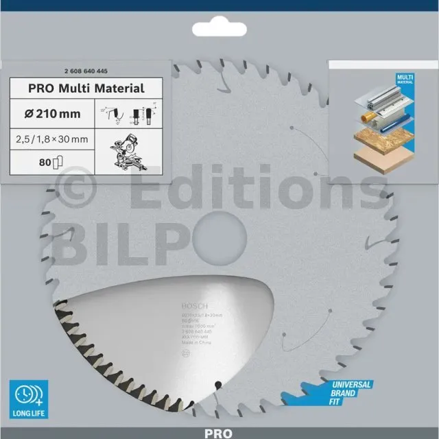 Lame de scie circulaire PRO 210 x 30 x 2.5 mm - 80 dents - Multi matériaux - Réf. 2608640445