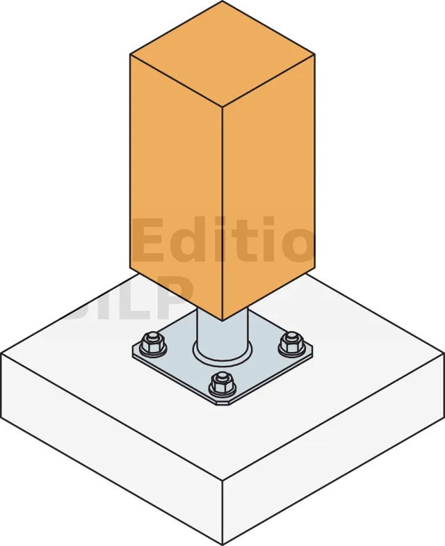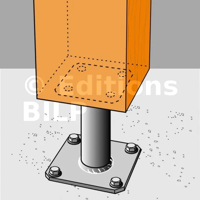 2. Fixer cette platine au poteau à l’aide de tirefonds LAG (pré-perçage nécessaire) ou vis SSH