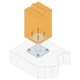 2. Fixer cette platine au poteau à l’aide de tirefonds ou SSH Ø10x50 (pré-perçage nécessaire).