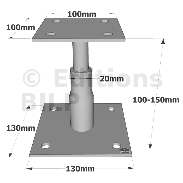 Pieds de poteau réglables en HAUTEUR - Réf. APB100/150
