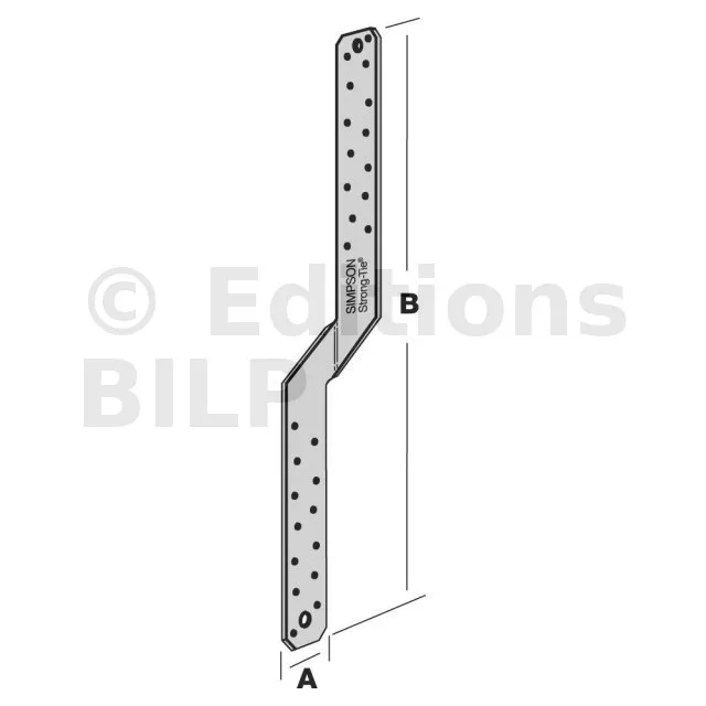 | Références | Dimensions [mm] | Valeurs caractéristiques Soulèvement ( Bois C24)Nb. de pointes ( sur chaque côté du feuillard) [kN] | ||||