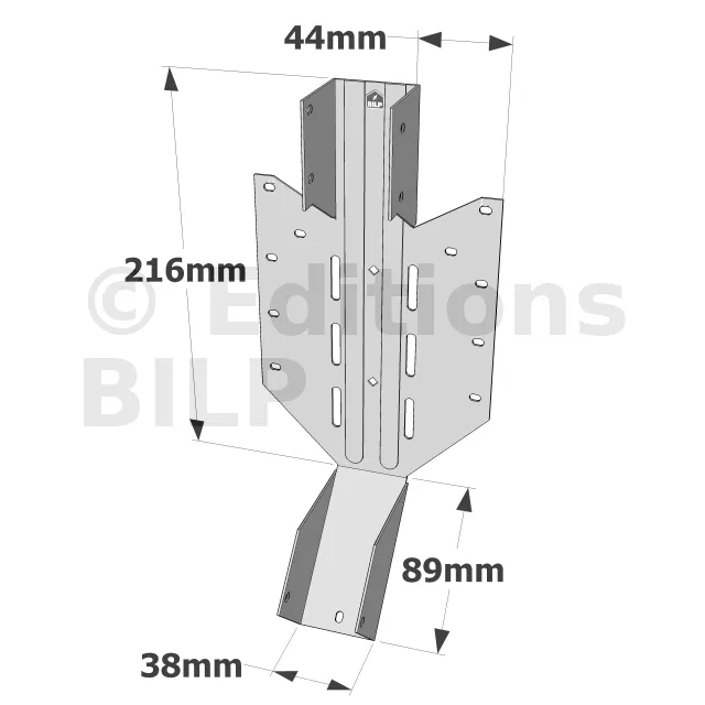 - Les trous oblongs permettent le clouage en biais si nécessaire.