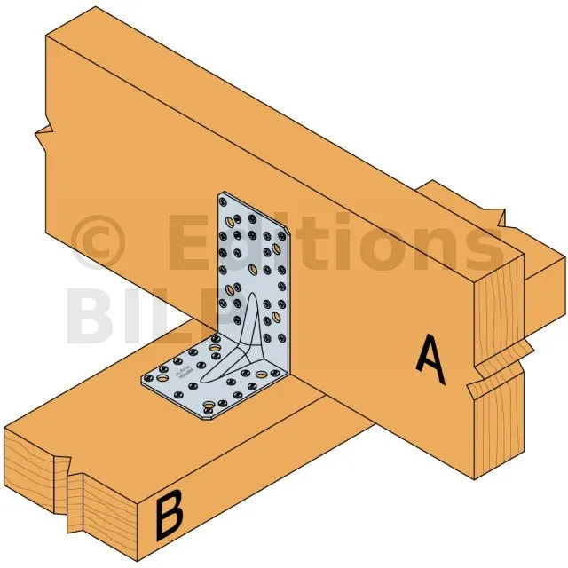 - Fixation BOIS/BOIS - clouage total2 équerres Aile A : 24 CNA Ø4.0x35 ou Ø4.0x50 mm ou Aile B : 16 CNA Ø4.0x35 ou Ø4.0x50 mm