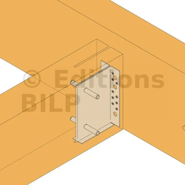L‘étrier à âme intérieure permet un assemblage discret sur support bois. Le talon intérieur positionne l’étrier par rapport au bois facilitant le montage des broches.