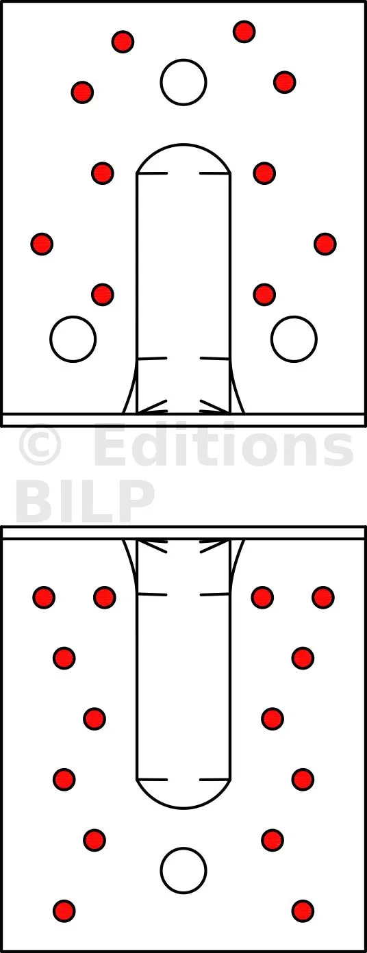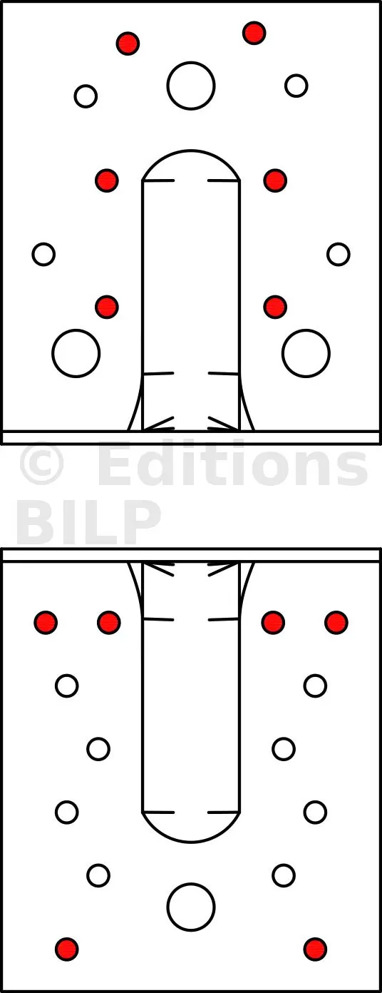 - Fixation BOIS/BOIS - clouage totalAile A : 4 ; Aile B : 6 ; type : Pointes annelées CNA Ø4.0x35 ou Ø4.0x40 ou Ø4.0x50 ou Ø4.0x60 mm, Vis CSA Ø5.0x35 ou CSA Ø5.0x40