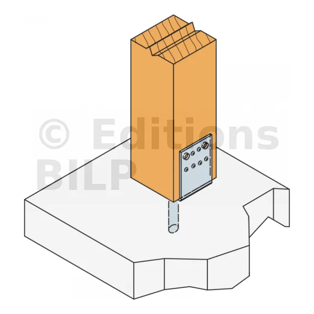 | Pied en âme + platine PPSDT | Lame centrale dans fente du poteau | Conçu pour efforts de soulèvement ; grande robustesse ; galvanisé | Demande entaille centrale ; pose plus technique | Poteaux de charpente lourde, zones ventées |