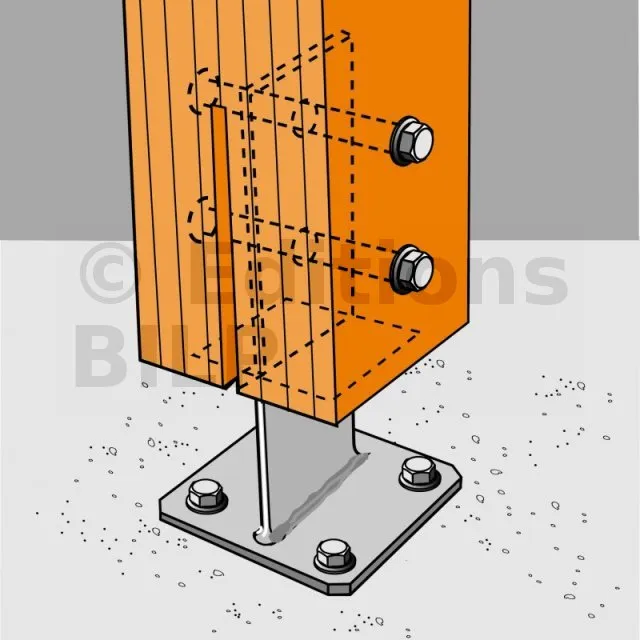 - Connexion bois sur support rigideSur poteau : 2 STD12 ; sur béton : 4Ø10 (goujons WA M10 ; tige filetée M10) ; sur acier : boulons