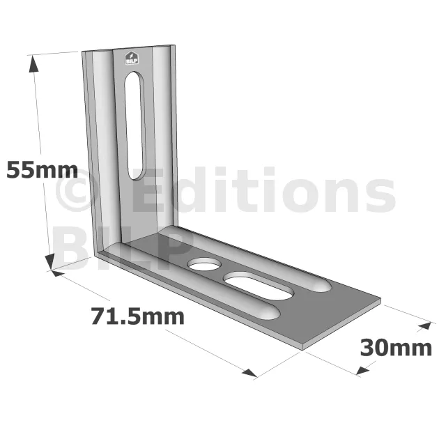 - Trous oblongs facilitant l’ajustement des assemblages,