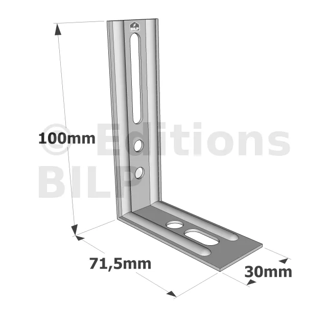- Trous oblongs facilitant l’ajustement des assemblages,