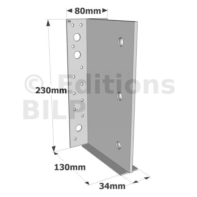 L‘étrier à âme intérieure permet un assemblage discret sur support bois. Le talon intérieur positionne l’étrier par rapport au bois facilitant le montage des broches.