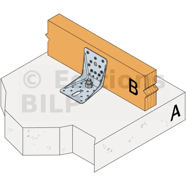 - Connexion bois sur support rigideAile A : 1 - type : boulon Ø10 ; Aile B : 10 ; type : Pointes annelées CNA Ø4.0x35 ou Ø4.0x50 mm