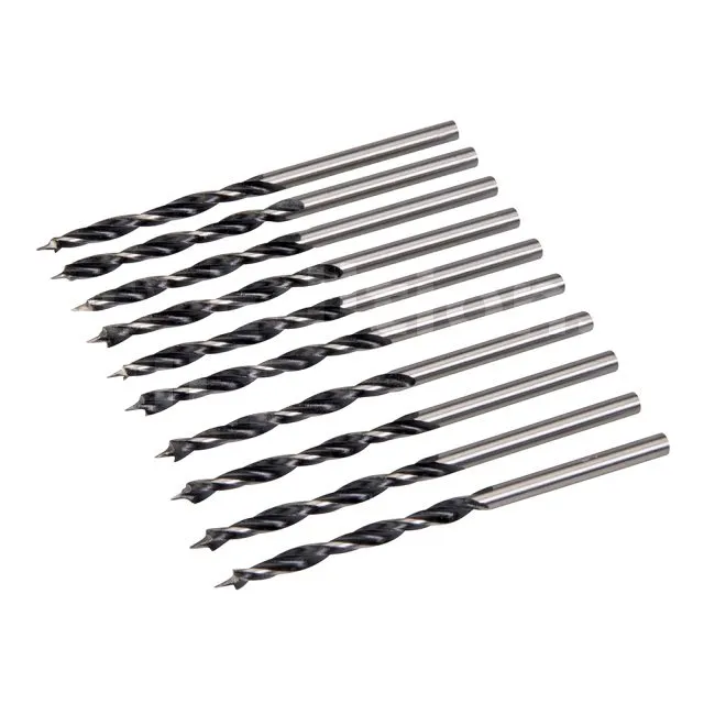 Forets à haute teneur en carbone rectifiés à pointe de centrage et double tranchant. La pointe de centrage permet un positionnement précis du foret. Pour le bois naturel ou artificiel.