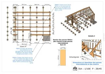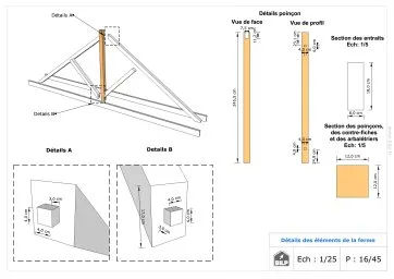 Les plans de structure à l’échelle sont faciles à lire et à comprendre. Ils vous permettrons de réaliser vous-même la structure de votre cabane. Les détails de réalisation sont indiqués. Nous calculons et optimisons les dimensions et les sections de pièces de bois.