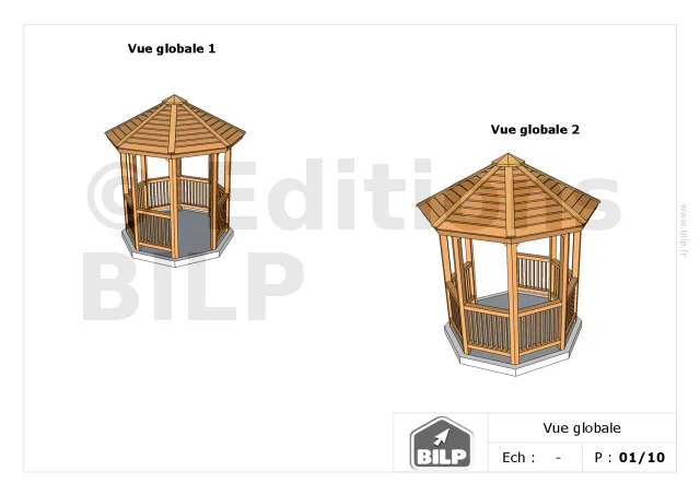 Je peux vous l’envoyer GRATUITEMENT au format PDF. Il s’agit du dossier de conception d’une belle GLORIETTE en ossature-bois. Peut-être que cela vous inspirera pour votre projet.