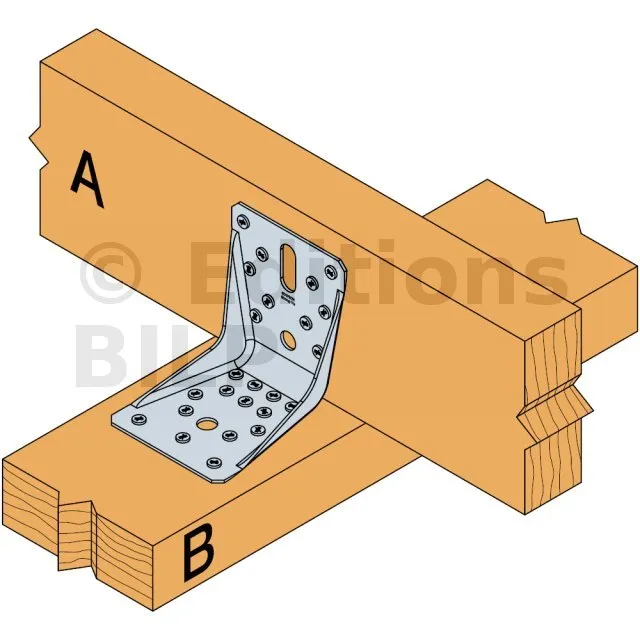 - Fixation BOIS/BOIS - clouage totalAile A : 8 ; Aile B : 10 ; type : Pointes annelées CNA Ø4.0x35 ou Ø4.0x50 mm, Vis CSA Ø5.0x35 ou CSA Ø5.0x40