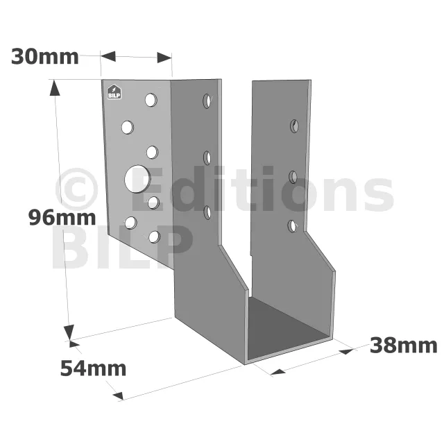 Sabots à ailes extérieures, gamme SBE ECONOMIQUE (épaisseur 1,5mm, profondeur 55mm) - Réf. SBE38/96