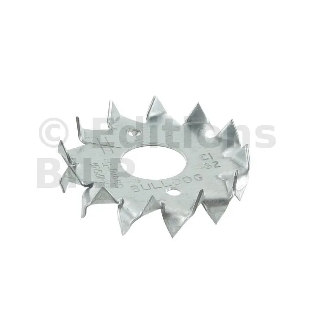 Les crampons Bulldog double denture entrent dans la réalisation d‘assemblages boulonnés. Ils permettent d‘augmenter la capacité de reprise de charge des assemblages.