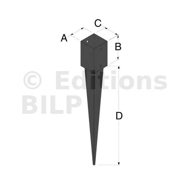 Pied de poteau carré à enfoncer - Finition NOIRE - Réf. PPJNET90/620