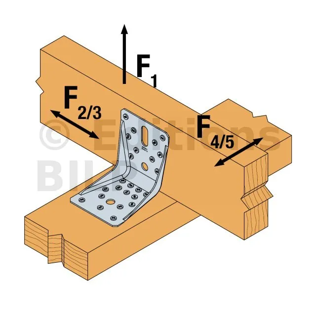 Pour obtenir les valeurs de résistance pour une seule équerre, il convient de diviser par deux les valeurs du tableau ci-dessus à condition que la poutre portée soit bloquée en rotation. Consultez notre ETE-06/0106 si la poutre est libre en rotation.