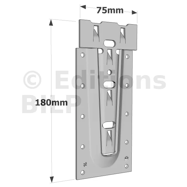 L’étrier à queue d’aronde en acier ETSN est un connecteur innovant et très discret. Il permet de reproduire l’esthétique d’un assemblage traditionnel à queue d’aronde. La partie femelle est placée sur la poutre porteuse avec des vis CSA ou des pointes CNA, tandis que la partie mâle est fixée à l’extrémité de la poutre portée avec les vis à tête plate.