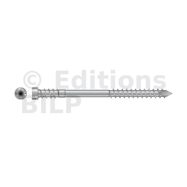 La vis pour terrasse bois durs DSPRO A4 est préconisée pour pour la réalisation de terrasses et assemblages en bois exotique dur.
