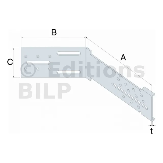 L’équerre AB45C est utilisée lors de la réalisation d’isolation par l’extérieur des façades. Elle maintient le chevron d’angle dans le cas d’un angle sortant entre les murs.