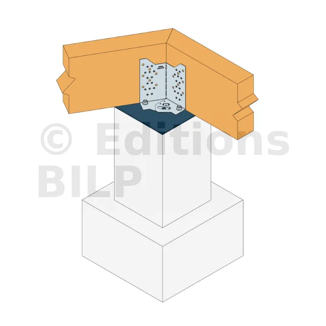 - Fixation de poutre bois (bois lamellé-collé, bois massif...) de hauteur 125 à 200 mm sur plot béton