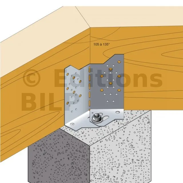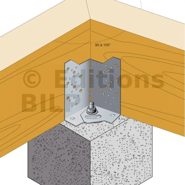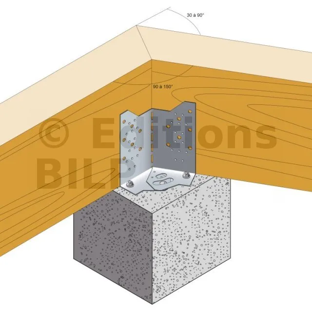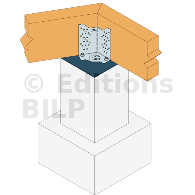 - Fixation de poutre bois (lamellé collé, bois massif...) de hauteur 235 à 310 mm sur plots béton,