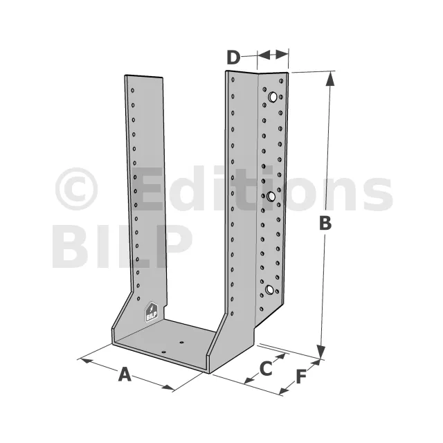 Les sabots GSE en acier galvanisé offrent une flexibilité grâce à des largeurs au choix selon les plages indiquées. Cette caractéristique permet de s’adapter parfaitement aux dimensions spécifiques des éléments de construction, garantissant une compatibilité optimale et une fixation stable.