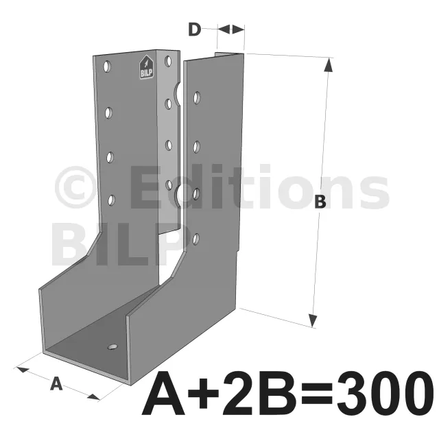 Le sabot à ailes intérieures SAI est une variante du sabot à ailes extérieures qui permet d’apporter une plus grande discrétion dans l’assemblage. Son utilisation permet de répondre à des cas particuliers tels les assemblages en coin.