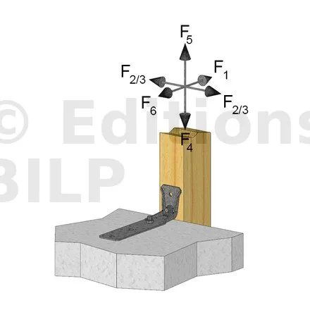 ** Se référer à la gamme de produit d’ancrage Simpson Strong Tie, type BOAXII, SET-XP, WA, AT-HP, en fonction du type de béton, des espacements et distances aux bords.