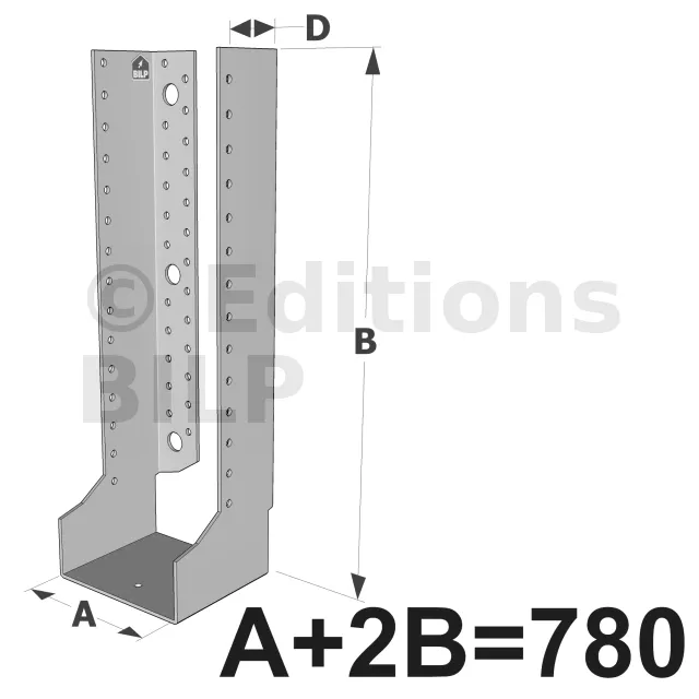 Grands sabots à ailes intérieures, gamme GLI ECONOMIQUE (développé 780mm, épaisseur 2.5mm, profondeur 90mm) - Réf. GLI780/2.5X