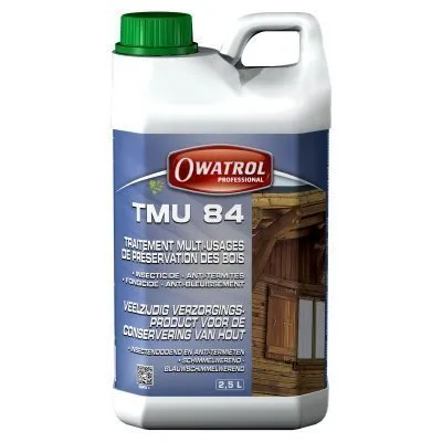 Préventif et curatif, insecticide, fongicide, anti-termites et anti-bleuissement en service. Produit prêt à l’emploi.