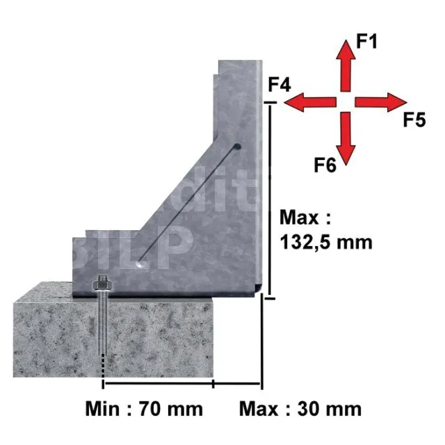 Compte-tenu des charges à reprendre, il est indispensable de vérifier la résistance des ancrages et du béton. En effet, dans certains cas, la résistance de l’ACW155 peut être limitée par la reprise de charge du béton et des ancrages.
