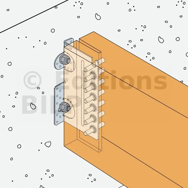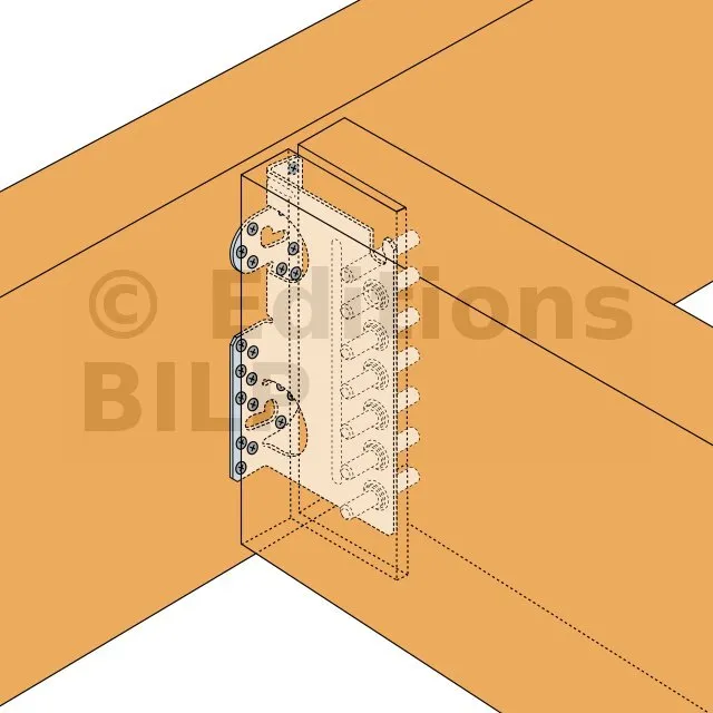 3. Percer transversalement la poutre portée pour y insérer les broches (diamètre de perçage en fonction du diamètre de la broche),