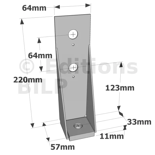 Ancrage pour montant d’ossature 64x220x57mm épaisseur 2.5mm - Réf. HD3B